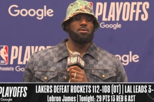 NBA直播网4月25日讯 NBA季后赛西部首轮G3,湖人加时112-108战胜火箭,大比分3-0领先。赛后詹姆斯接受了媒体采访,以下为采访全文。