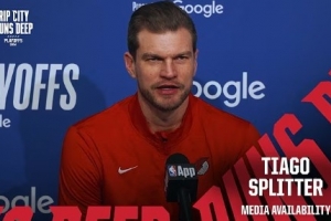 NBA直播网4月27日讯 NBA季后赛,开拓者93-114不敌马刺,大比分1-3落后,赛后斯普利特接受了媒体采访,以下为采访全文。