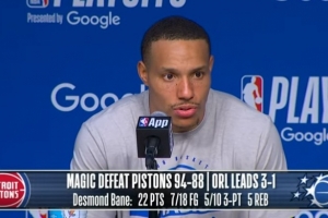 NBA直播网4月28日讯 NBA季后赛首轮,魔术94-88活塞,大比分3-1领先,赛后德斯蒙德·贝恩接受了媒体采访,以下为采访全文。