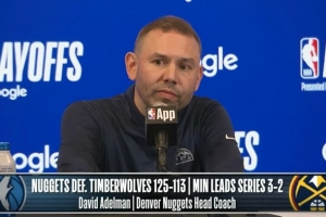 NBA直播网4月28日讯 NBA季后赛首轮G5,掘金125-113击败森林狼,大比分来到2-3。赛后阿德尔曼接受了媒体采访,以下为采访全文。
