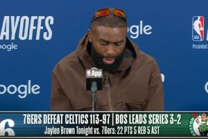 NBA直播网4月29日讯 NBA季后赛,凯尔特人97-113不敌76人,总比分3-2领先。布朗赛后接受了媒体采访,以下为采访全文。