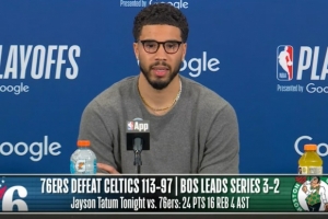 NBA直播网4月29日讯 NBA季后赛,凯尔特人97-113不敌76人,总比分3-2领先,绿军球星塔图姆赛后接受了媒体采访,以下为采访全文。