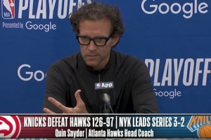 NBA直播网4月29日讯 NBA季后赛,尼克斯126-97大胜老鹰,总比分3-2领先。斯奈德赛后接受了媒体采访,以下为采访全文。