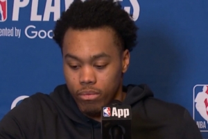 24直播网4月21日讯 NBA季后赛,猛龙105-115不敌骑士,总比分0-2落后。赛后斯科蒂·巴恩斯接受了媒体采访,以下为采访全文。