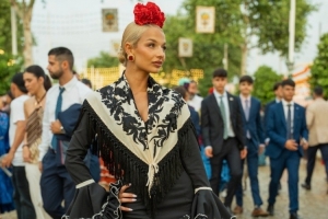 四月节上被谈论最多的事物之一便是女士们选择的塞维利亚舞裙,费尔明的女友为自己的第一套装束选择了一条非常优雅经典的传统弗拉门戈裙。