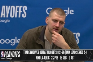 NBA直播网4月26日讯 在今天结束的一场季后赛中,掘金以96-112不敌森林狼。赛后,掘金球星尼科拉·约基奇出席了新闻发布会。以下是完整版采访内容。