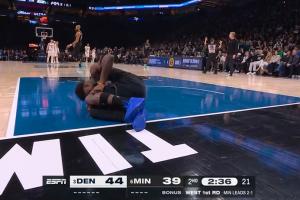 在今天森林狼对阵掘金的西部首轮G4激战中,爱德华兹在一次防守落地时遭遇了左膝过度伸展,痛苦倒地后被队友搀扶离场。