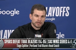 NBA直播网4月29日讯 NBA季后赛首轮G5,开拓者95-114不敌马刺,系列赛1-4被淘汰。斯普利特赛后接受了媒体采访,以下为采访全文。