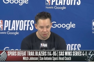 NBA直播网4月29日讯 首轮系列赛,马刺114-95轻取开拓者,大比分4-1绅士横扫。米奇·约翰逊赛后接受了媒体采访,以下为采访全文。